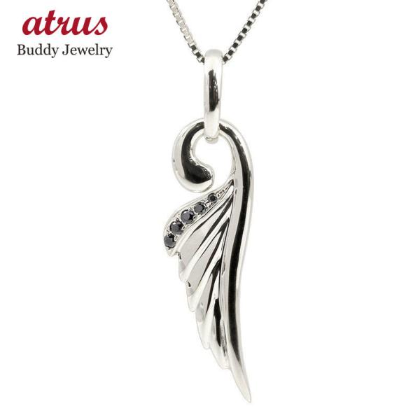 プラチナネックレス メンズ 天使 ブラックダイヤモンド 羽根 メンズ ペンダント Pt900 ベネチアンチェーン 男性用 翼 天使 エンジェル 羽 翼 フェザーネックレス pnm ジュエリー工房アトラス